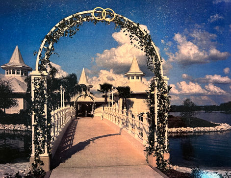 Located on a new earth fill island accessible by boat or foot bridge and aligned with Cinderella's Castle as a backdrop.